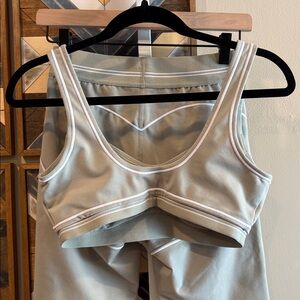 ALO Yoga Airbrush Heart Throb Set Bra + Leggings Limestone / White size Small