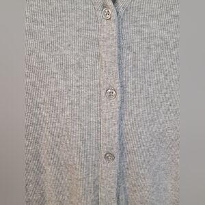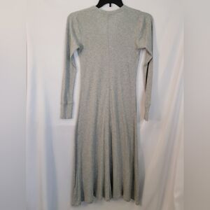 J. Crew womens knit sweater dress, maxi length, button down, long sleeve, v-neck, flare at bottom, ribbed cuffs, heather gray in color, soft, stretchy, casual, back to school, wear with boots, parties