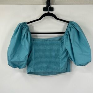 Abercrombie & Fitch Blue Puff Sleeve Crop Top