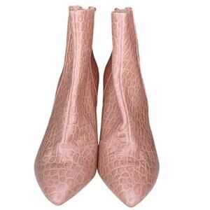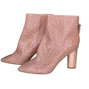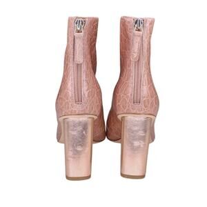 Nine West Eric Ankle Boots Chunky Heel Croc Embossed Leather Rose Gold