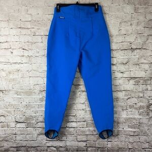 Vintage Obermyer Women's Ski Pants Size 10R Blue Stirrups Wool Nylon Stretch Y2K