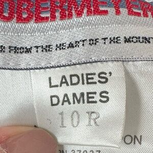 Vintage Women's Obermyer Ski Pants Size 10R. Bright Blue with Zipper Pocket and Stirrups made of Wool, Nylon & Spandex with Logo at the back. Gently Used, Please see pictures for details. Check measurement's for best fit as Vintage tends to run smaller.
