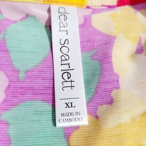 Dear Scarlett Floral Blouse Top Tunic XL Bright Pink Yellow Red Green 3/4 Sleeve