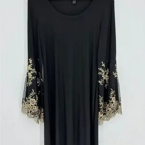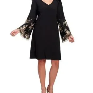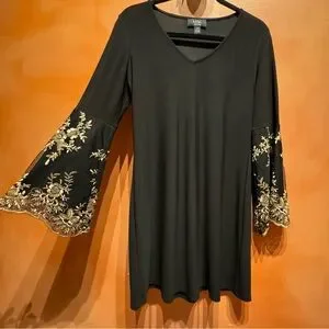 MSK Black and Gold Dress Flare Bell Sleeve Petite Small