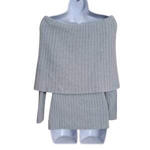 Newport News Caped Off Shoulder Sweater Sz S Ribbed Angora/Lambswool Blend Blue