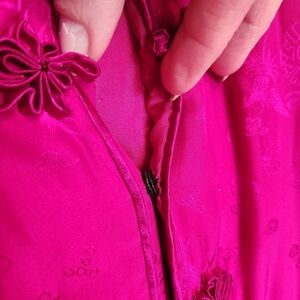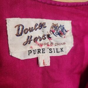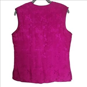 VINTAGE DOUBLE HORSE MAGENTA SILK ASIAN PATTERN PUFF VEST SIZE MEDIUM/LARGE EUC