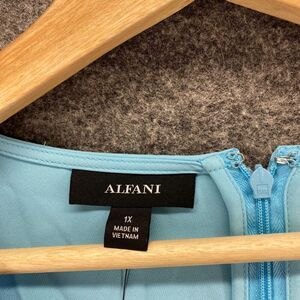 New Alfani Blouse Women 1X Plus Blue Striped Zipper 3/4 Sleeve Round Neck Casual