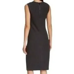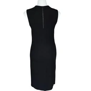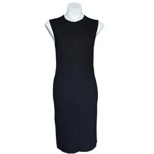 Cut from a very soft stretchy rib knit fabric. Body conforming with lots of give. Crew neckline. Exposed back zip.