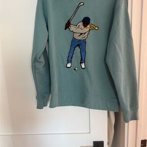 Gently worn Eastside golf is a relatively new black owned golf brand that combines streetwear to the traditional sport. This premium sweatshirt is where comfort meets style in every stitch. Made from a cotton blend fleece, our sweatshirt will keep you warm on those chilly days on the course. The classic crewneck design and relaxed fit make our sweatshirt perfect for stepping out with in effortless fashion. The iconic Swingman logo is boldly embroidered on the chest.