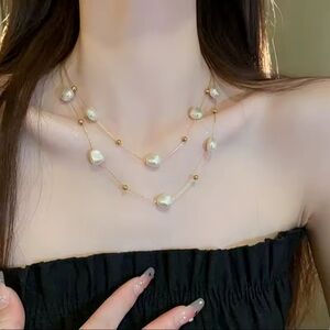 316L Stainless Steel 2in1 Large Pearl Pendant Necklace For Women New Trend Girls Neck Jewelry Chain Party Wedding Gift. This elegant necklace features lustrous cream pearls on a delicate gold chain, perfect for adding a touch of sophistication to any outfit.