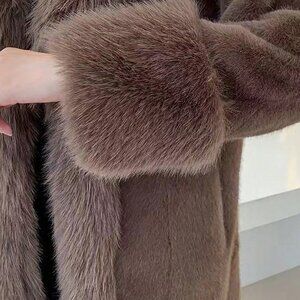Brown Casual Women's Elegant Faux Fur Collar Jacket