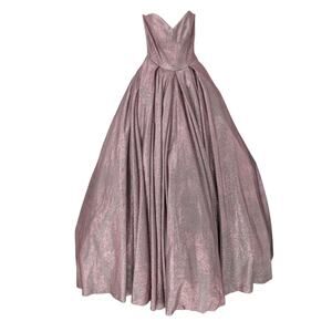 Sherri Hill Metallic Pink Glitter Ball Gown 0 Strapless Corset Back Prom Dress