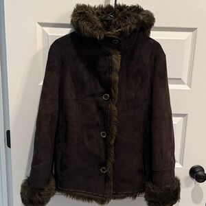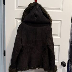 Women's Brown Leather and fur lined coat