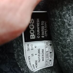 Stay warm with these Bogs winter boots. Features a stylish camouflage pattern. Durable and comfortable for cold weather. Size 9 Woman's NWOT worn once. No rips stains tears. Blue Black camouflage. Sold as listed in pics. -22° F. Bogs are built on a European last which is offered in full sizes. The European last is contoured to the foot for ultra-comfort. Beginning with a roomy toe box, the last is wider through the forefoot, supportive in the arch, and narrows in the heel. This combination accommodates a greater range of widths and lengths, superseding the need for half sizes and widths.