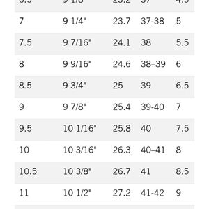 I have listed their size chart and additional info to help from their site. They are roomier in the tow to fit larger sizes, it's stated in their site. Hope that helps.