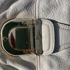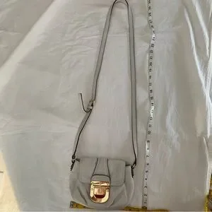Chic white crossbody bag by Michael Kors. Features elegant gold accents. Ideal for any stylish outing.