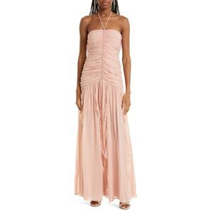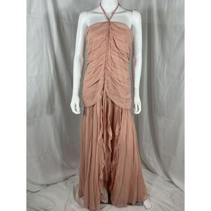 Veronica Beard Women Lucine Ruched Silk Halter Dress Sleeveless Pink 12