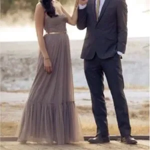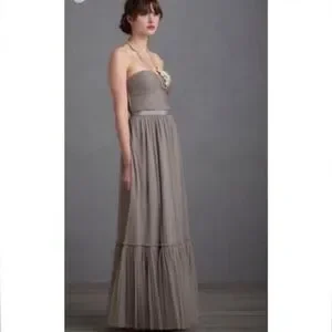BHLDN Grey Niceties Tiered Tulle Sweetheart Corset Bodice Gown Event Holiday SZ4