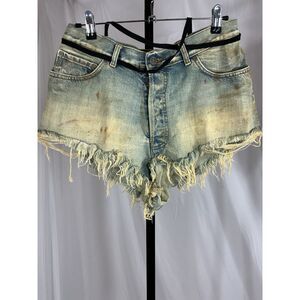 Maison Margiela Belted Distressed Denim Shorts Blue 6