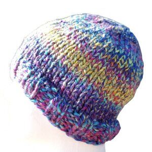 Men's Beanie Hat Cap Handmade Knit Slouch Delphinium Blue Chunky Women