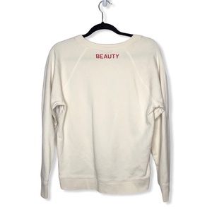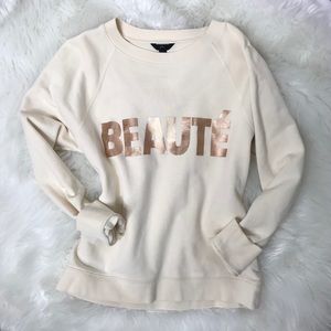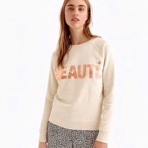 J Crew-“BEAUTE’”-Cream colored Sweatshirt w/Rose gold letters-long sleeves-EUC(worn once)-Sz Med.