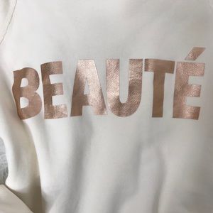 J Crew-“BEAUTE’”-Sweatshirt w/Rose gold letters-EUC-worn once-Sz Med.