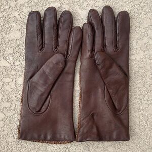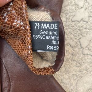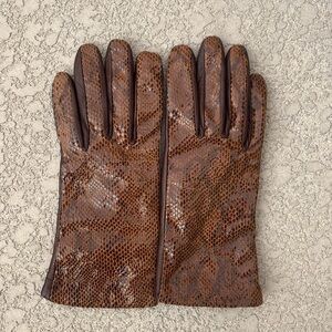 Brown Leather Women’s Gloves Snakeskin Print Cashmere Lining Italy Size 7.5