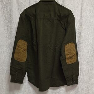 Stylish men's button down shirt in olive green with tan patches. Perfect for a casual yet sophisticated look. This shirt is brand new with tags. Please note that the patch is on the left side of the chest. It is surprisingly lightweight with it being lined with a satin like material. Feel free to ask any questions!
