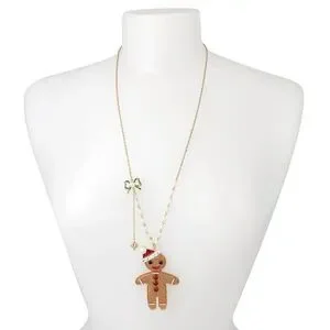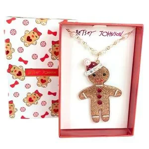 🌀 Betsey Johnson Gingerbread Man Santa Necklace