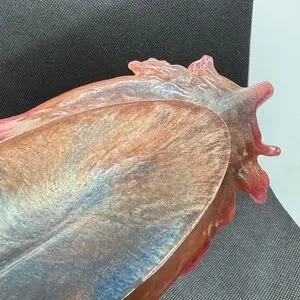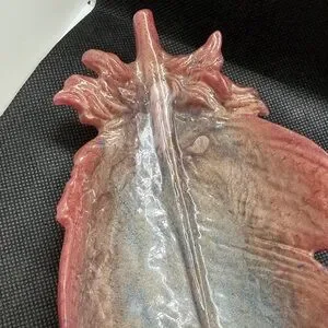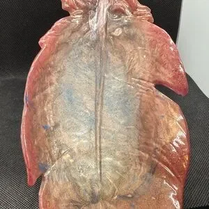 Unique Resin Elegant leaf-shaped dish with a pink and blue design. Perfect for adding a touch of nature to your decor. (10 inches long x 4 1/2 wide)