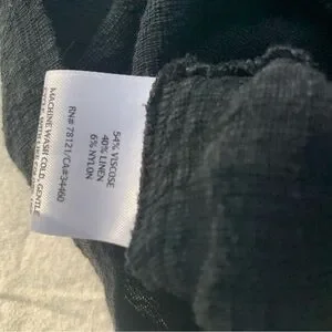 Eileen Fisher 3/4 Sleeve Black Linen Blend Textured Blazer, shell buttons.