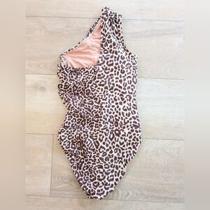 J Crew One Piece Animal Print Swimsuit One Shoulder Leopard Ruches 2 BF245