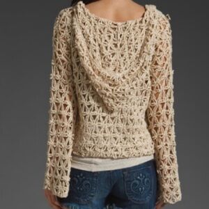 Free People Crochet Knit Hooded Sweater SZ Small Tan Beach Wear Summer EUC