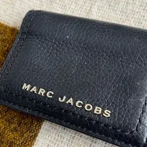 Compact and elegant card holder. Crafted from fine black leather. Features Marc Jacobs branding. (Slight scuffing on logo, but not too noticeable)