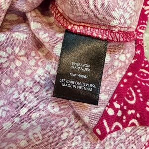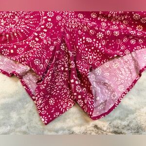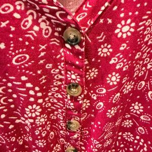Celebrate effortless warm-weather style with this Torrid boho romper in a vibrant red and white floral/mandala print. Features a flattering V-neck, button-front detail, and a comfortable drawstring waist for an adjustable fit. Soft, breathable rayon-spandex fabric drapes beautifully and is perfect for casual days out or relaxed weekends.