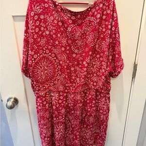 Torrid Size 3X Red Floral Boho Button Front Romper Drawstring Waist Soft Stretch