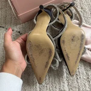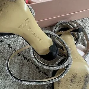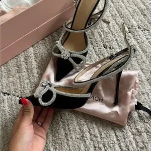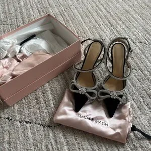 Elegant heels with sparkling silver bows. Perfect for adding glamour to any outfit.