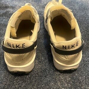 Size 9.5 Women’s Nike Debut Waffle Sneaker. In good condition, very little wear. Off-white color w/black swish. Retro gets modernized with these sleek sneaks inspired by the Nike Daybreak. Era-echoing suede and nylon are paired in complementary colors, and the updated wedge midsole gives you an extra lift. Style, comfort, iconic Waffle outsole—this is a perfect new addition to your daily rotation.