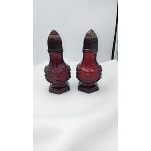 AVON Cape cod ruby red glass Salt & Pepper/ Talcom powder shakers (smell like perfume) May 1978. no damage but they smell like perfume.
