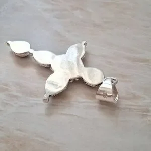 Stunning handmade, red rose dahlia turquoise, sterling silver cross pendant. Exquisite artisan design. Please take a look at my closet for more unique jewelry!! π