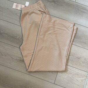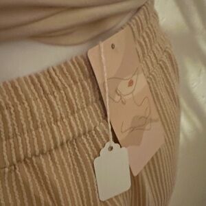 Elevate your style with these chic beige ribbed pants. Perfect for any occasion, they offer comfort and elegance. Stretchy could fit a medium.