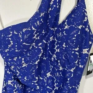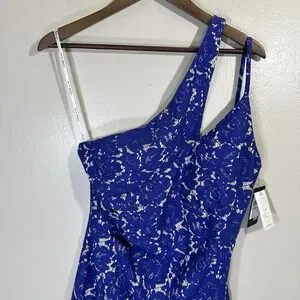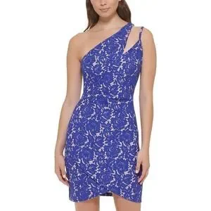 GUESS Women's Size 8 Blue Bonded Lace Cutout One Shoulder Dress NEW