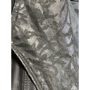 Keywords: leather coat, long jacket, trench style, embossed detail, classic, outerwear, women's fashion, evening wear, statement piece, sophisticated, professional, business casual, fall fashion, winter wear