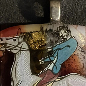 Vintage 3D horse riding pendant, super cool pendant. Wiith bronze glimmer ,Silvertone