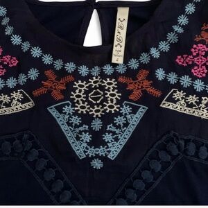 Rich and Beautiful size large Navy Embroidered Sleeveless Top boho Cottagecore