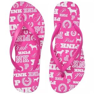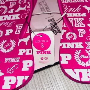 🩴 PINK Victoria's Secret Logo Flip Flops Size 8 NWT