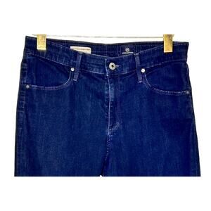 AG Adriano Goldschmied The Farrah High Rise Skinny Crop Dark Wash Jeans. Jeans are very dark, I have lightened the pictures a little to show detail. Cotton, Polyester, Tencel, Elastane. Size 32. Measurements taken laying flat: