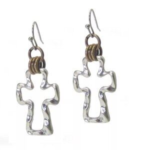 New Silver Cutout Cross Dangle Earrings