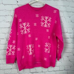 Lane Bryant Pink Snowflake Crew Neck Sweater stretchy size 22/24 festive cozy