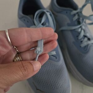 Excellent very gently used condition as pictured with one flaws, a rub in the fabric at one heel. Some light marks otherwise. Tread and interior are in great shape. Size men's 9.5.